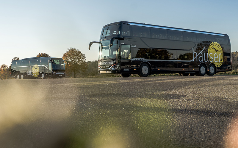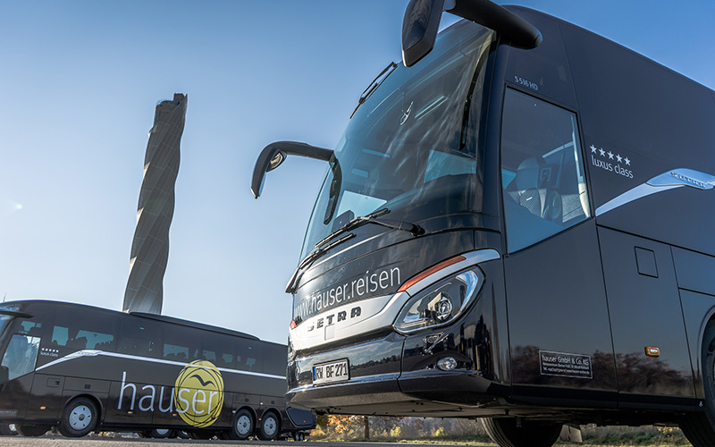 Der Name hauser steht seit Jahren für erstklassige Busqualität. Wir verfügen nicht nur über eine der modernsten Busflotten Deutschlands, sondern auch über den größten 5-Sterne-Fuhrpark in ganz Baden-Württemberg. Unser eigener Anspruch an Qualität, Design und Sicherheit ist sehr hoch – »Sparen« bei der Investition in unseren Fuhrpark ist daher nur bedingt möglich. Auch aus diesem Grunde sind unsere Angebote nicht »billig« – Sie können dafür von uns aber Einiges erwarten! Unsere Vorstellungen von Wertigkeit setzt derzeit die Busmanufaktur Setra am besten um – sie liefert Premium-Busqualität, die Sie spüren und fühlen werden, versprochen!