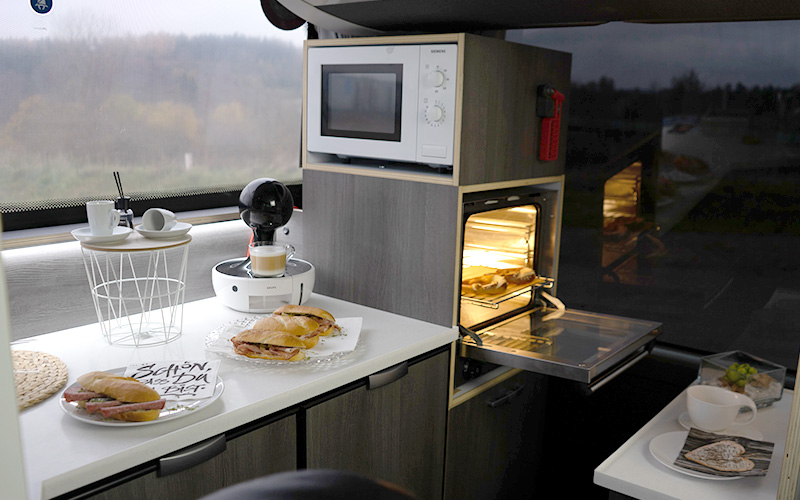 Das Design der hauser.flotte spricht die Sprache der Zukunft. Es steht für eine moderne, von stilistischer Dynamik geprägte Reisebus-Generation. Sie bemerken sofort das großartige Raumgefühl mit einer Stehhöhe von über 2 Metern und den großen Panoramafenstern. Das Interieur wurde mit viel Liebe zum Detail ausgesucht und verspricht elegantes Wohnzimmer-Ambiente – hier werden Sie sich sofort wohlfühlen. Besonderes Augenmerk haben wir auf die hauser.sitze gelegt, die nun neben diversen Neuheiten auch über eine Komfort-Kopfstütze verfügen – zusammen mit dem von uns gewohnt großen Sitzabstand sind sie ein Garant für entspanntes Reisen. Dazu sorgen unsere selbst entwickelten Bordküchen, Bord-WLAN und vielfältige Detailverbesserungen