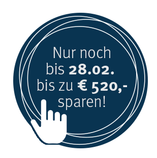 Bei unseren zwei aktuellen Extrablättern gelten die Frühbucherpreise nur noch bis zum 28. Februar! Sichern Sie sich schnell noch die letzten Kabinen und sparen Sie bis zu € 520,-.