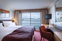 C-Kabine: DECK 2 2-Bett-Außenkabine, C 14,5 m². Großzügig geschnittene, komfortable Außenkabine mit französischem Balkon. Elegantes Design und edle Materialien sorgen für Wohlfühlatmosphäre. Ausstattung: Safe, Klimaanlage, TV, Föhn, DU/WC, Saunatuch, Wolldecke, Telefon, Bademantel.