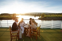 Das »Marktrestaurant« bietet offene Tischzeiten und große Buffets. Das bedeutet, Sie können flexibel innerhalb der Öffnungszeiten essen, wann Sie möchten. Das Buffet bietet abwechslungsreiche Gerichte mit vielen frischen, regionalen Produkten. An Bord gibt es außerdem die »Weinwirtschaft«. Hier bestellen Sie gute Weine und köstliche, regionale Köstlichkeiten (gegen Aufpreis). Mineralwasser ist zu den Mahlzeiten inklusive. Die gemütliche Lounge auf Deck 2 bietet eine schöne Aussicht. Hier können Sie aus einer umfangreichen Barkarte bestellen (Cocktails, Longdrinks und Auswahl an Spirituosen nur mit PREMIUMPLUS Getränkepaket inklusive).
