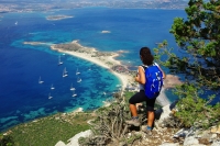 8 Tavolara. Ein letztes Mal tauschen Sie die Räder des hauser.premiumbusses gegen Bug und Heck – für Sie geht es heute nach Tavolara. Schon beim Durchqueren des Meeresschutzgebiets sehen Sie das steil aus dem Wasser aufragende Eiland aus Dolomit-Kalkgestein und Granit. Tavolara ist ein beeindruckender Berg im Meer: rund 560 Meter hoch, etwa vier Kilometer lang – eine schroffe Wand aus Fels, fast senkrecht, wild und einfach spektakulär. Sieht ein bisschen aus wie ein Reptil, finden Sie nicht? Und jetzt kommt das Charmante daran: Obwohl auf der Insel weniger als zwanzig Menschen leben, hat sie einen König – Tavolara gilt als das kleinste Königreich der Welt. Nach einer kleinen Wanderung begegnen Ihnen seine Vorfahren auf dem »Friedhof der Könige«, einer kleinen, rustikalen Grabstätte auf einer Landzunge. Besonders ins Auge fällt das Grab des ersten Königs, Paolo Bertoleoni: Auf dem Grabstein thront – ganz stilecht – eine fest zementierte Krone. [F/A/Ü]