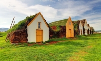 7 Nach Reykjavík [330 km]. Von Nordislands Geschichte zurück in die Hauptstadt! Die Fahrt führt über die beeindruckende Passstraße Öxnadalsheiði zum Heimatmuseum Glaumbær. Die urigen Torfhäuser, deren Wurzeln bis ins 11. Jahrhundert reichen, bieten einen faszinierenden Einblick in das frühere Leben der Isländer – schlicht, naturverbunden und voller Geschichte. Wer noch ein besonderes Souvenir für die Daheimgebliebenen sucht, wird hier sicher fündig. Anschließend geht es weiter über die moorige, seenreiche Hochebene Holtavörðuheiði und durch das idyllische Tal Norðurdalur zurück nach Reykjavík – ein letzter landschaftlicher Höhepunkt, bevor die lebendige Hauptstadt Sie wieder willkommen heißt. [F/Ü]