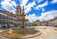 6 Guimarães & Braga [130 km]. Nichts weniger als die Wiege Portugals ist Ihr heutiges Ziel. Mit unserer Reiseleitung spazieren Sie auf den Burghügel von Guimarães und streifen danach durch dessen historische Gassen – schön ist es hier. Historisch ist auch das »Casa de Sezim«, wo Sie eine Weinprobe genießen – »A saúde«! Danach genießt Ihr Auge: in Braga können Sie unter anderem die älteste Kathedrale Portugals besichtigen. [F/A/Ü]